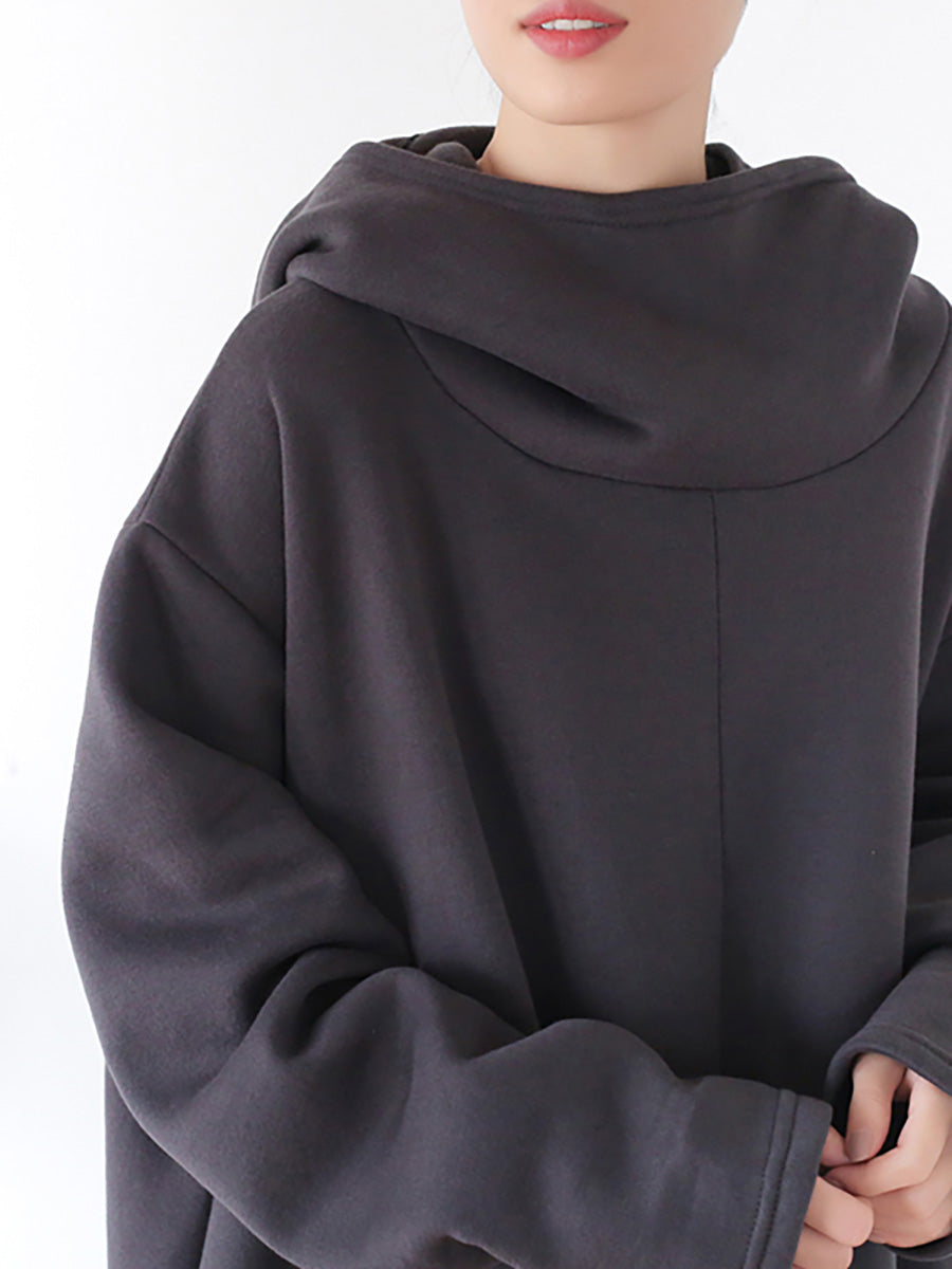 This casual dress features an easy, modern fit with a rounded hood and drawstring for adjustability and an irregular hem for a unique, contemporary detail. The long sleeves and cozy hood offer ultimate protection and comfort during the autumn and winter seasons, while the solid color ensures a timeless and versatile look. Perfect for relaxed days at home or for effortless style on casual outings.